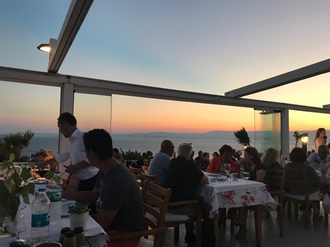 Sakız Adası manzarası eşliğinde et ve meze çeşitlerini yiyebileceğiniz bir restorandır. Sabahları, serpme kahvaltı servisi de mevcut.
