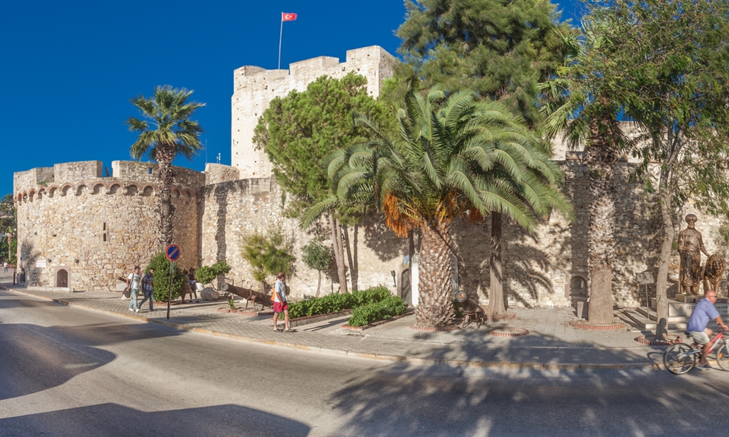 II. Beyazıt tarafından 1508 yılında dikdörtgen biçiminde yaptırılan kale, 6 kulesi ve üç yanındaki hendeklerle muhteşem bir görüntü oluşturmaktadır. İlk yapıldığı zamanlarda denize sıfır olarak inşa edilen kale, zaman içerisinden denizin doldurulmasıyla daha içte kalmıştır. Ayrıca, kalenin önünde Büyük Türk Komutanı Kaptan-ı Derya Cezayirli Hasan Paşa'nın yanında aslanı bulunan heykeli de görülebilmektedir.