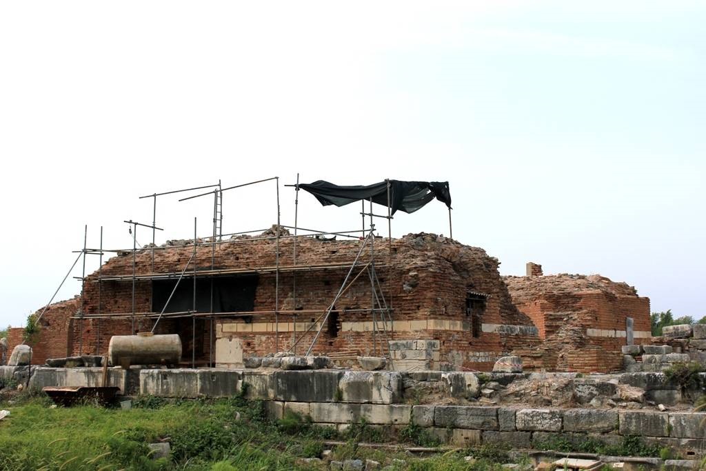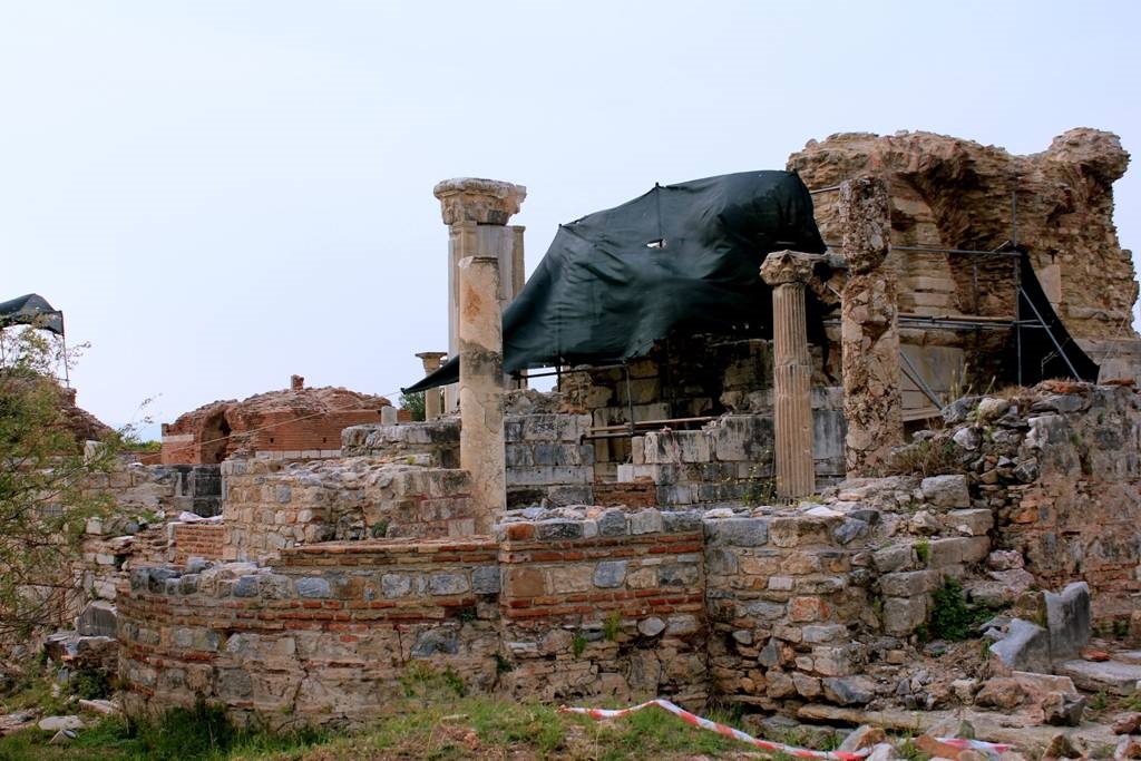 Kilisenin MS 2. yüzyılda İmparator Hadrianus (117-138) döneminde yapılmış, Roma dönemine ait bir yapının üzerine Bizans döneminde bazilika olarak inşa edildiği düşünülüyor. Kilisenin ilk yapımında üç nefli olduğu, daha sonra yapılan ilavelerle beş nefe çevrildiği anlaşılıyor. MS 7. yüzyılda kilisenin apsidine açılan bir kapı ile geçilen, ikinci bir kilise daha yapılmış ve böylece kilisenin adı Çifte Kiliseler'e dönüşmüş.