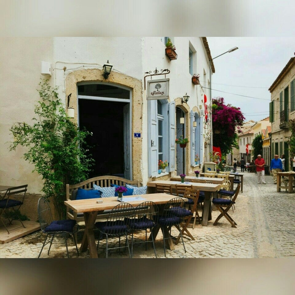 Eflatun, Alaçatı Çarşısı'nda sokak üzerinde sevimli küçük bir mekân. 50 kişilik kapasitesi olan mekânda günlük mezeler büfede, ara sıcak ve yemekler menüde yer alıyor. Gitmeden önce mutlaka rezervasyon yaptırmanız öneriliyor. Kalite, lezzet ve uygun fiyat arayanların tercih ettiği mekânda hizmet ve servis ön plana çıkıyor. Karidesli spagetti, tahinli ıspanak mezesi, lorlu cevizli ezme, robespiere, beğendili ahtapot en çok beğenilen lezzetler arasında.